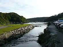 Solva lies on the north side of St Bride's Bay, in North Pembrokeshire in the Pembrokeshire Coast National Park and on the Pembrokeshire Coast Path.[2] It lies on a deep valley at the mouth of the River Solva. In the valley is Lower Solva, consisting of a long street ending at the small harbour. Most of the modern development has been in Upper Solva, on the cliff top to the west of the harbour.