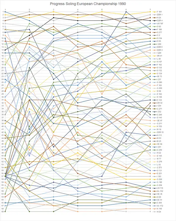| 42 | Schulze | Thum Michael Zachries | DDR 15 | 28 | 34.0 | 59 | 65.0 | 47 | 53.0 | 10 | 16.0 | 49 | 55.0 | 26 | 32.0 | 318.0 | 253.0 | |||