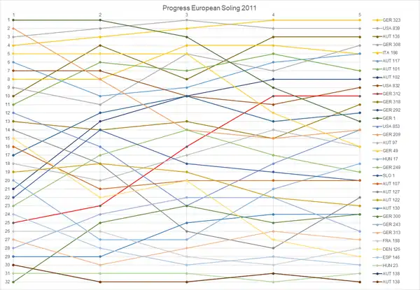 | 10 | Thomas Scherer | Jorg Goletz Andreas Baumüller | GER 292 | 5 | 5 | 10 | 10 | 17 | 17 | 10 | 10 | 6 | 6 | 12 | 12 | 8 | 8 | 10 | 10 | 91 | 74 | |||