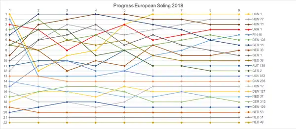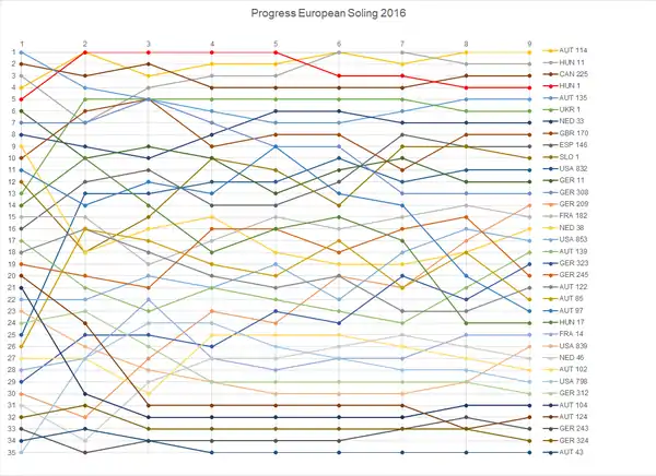 | 15 | György Wossala | Pepe Németh Kristóf Joó | HUN 77 | 4 | 4 | 11 | 11 | 17 | 17 | DSQ | 28 | 14 | 14 | 14 | 14 | 9 | 9 | 6 | 6 | 131 | 103 | |||