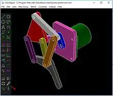 ![]() A mechanical simulation in SolveSpace | |