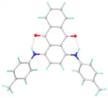 According to X-ray crystallography, the anthroquinone portion of the molecule is planar. Both amine protons form hydrogen bonds to the carbonyls.[2]
