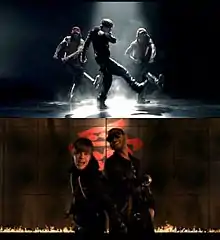 The video features Bieber dancing along several dance crews along a black backdrop, and a scene with ninjas and a flame outline.[3] The video begins with Bieber dancing with different members of the crews with use of a spotlight effect, followed by Bieber being flaunted by a single female dancer.[3] Then the video cuts to Bieber performing Stepping (African-American)-style choreography with two male dancers, shirtless with red hats and red suspenders. With the aid of smoke, the video moves to Bieber dancing with Beat Freaks. Usher sings his verse along with The Syrenz as dancers in a room with metal chandeliers before uniting with Bieber dancing in the scene aided by Poreotics.[3] Then Bieber and Usher sing and dance with Medea Sirkas in ninja attire in front of a background of Chinese calligraphy ("Love") and flames, before returning to the black backdrop and metal chandeliers as Bieber dances with Simrin Player and LXD in a scene with bookbags.[3] The ending features Bieber and several of the dancers featured performing group choreography before cutting to Bieber and Usher with the in front of the calligraphy and flames.