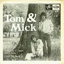 During april of 1967, Swedish group Maniacs, featuring vocalist Tommy Körberg, enjoyed success with their cover of James Brown's "Please, Please, Please", which reached number five on national charts Tio i Topp.[10][11] However, during that summer, the band started undergoing a reform, on the basis of their manager Benny Englund.[10] Their guitarist Örjan Englund quit the band and was replaced by Gunnar Kullenberg.[12] Englund, who had ambitions on creating a Swedish equaivalent of Sam & Dave,[13][14] hired Michael Johansson as a second vocalist, while also changing their name to Tom & Mick & Maniacs.[10][12] For their debut single, "Someone's Taken Maria Away" was chosen on the ground that it was relatively obscure and could be transformed into a soul pop song.[15]