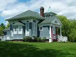 The historic district is 100 acres (40 ha) in size, and stretches along Main Street, with extensions along Springfield Road and Battle Street. Most of the buildings are early 19th-century residences, with Federal or Greek Revival style, although there are a selection of later 19th century styles represented as well. The older properties are largely clustered in three places: on Springfield Road near Main, the eastern end of Main Street, and the area just west of where the modern (1950) town hall stands.[2]