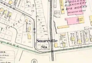 ![]() Somerville station on an 1884 map | ||||||||||||||||||||
