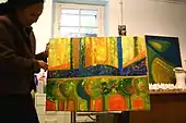 Sonam Dolma Brauen's works is abstractly and has clear conceptions of her role as an “ethnic painter”, and is influenced of Buddhist concepts on her work.[10] Her paintings represent the Tibetan Contemporary art.