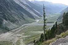 Sonamarg (Urdu pronunciation: [soːnaːmərɡ]) or Sonmarg (Urdu pronunciation: [soːnmərg]), known as Sonamarag[3] (Kashmiri pronunciation: [sɔnɨmarɨɡ]; lit. 'meadow of gold')[4] in Kashmiri, is a hill station located in the Ganderbal District of Jammu and Kashmir, India. It is located about 62 kilometers from Ganderbal Town and 80 kilometres (50 mi) northeast of the capital city, Srinagar.