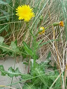 Sonchus arvensis, the field milk thistle,[2] field sowthistle,[3] perennial sow-thistle,[4] corn sow thistle, dindle, gutweed, swine thistle, or tree sow thistle, is a species of flowering plant in the family Asteraceae. S. arvensis often occurs in annual crop fields and may cause substantial yield losses.[5]