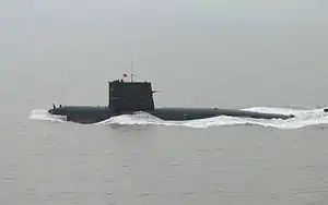 The Type 039 submarine (NATO reporting name: Song-class) is a class of diesel-electric submarines of the People's Liberation Army Navy. The class is the first diesel-electric submarine to be fully developed within China and also the first Chinese diesel-electric submarine to use the teardrop hull shape.