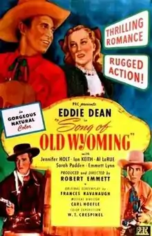 Song of Old Wyoming is a 1945 American Western film directed by Robert Emmett Tansey. It was shot in Cinecolor and released by Producers Releasing Corporation. Western star Lash LaRue debuted in this film playing the Cheyenne Kid (Eddie Dean's sidekick in the film.)