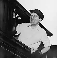 According to Spencer Leigh, "You Keep Me Swingin'" mocks "the image of Frank Sinatra as the perpetual swinger".[13] The song, arranged by Ron Goodwin in a big band approximation of Nelson Riddle’s work with Sinatra, was written by George Martin (under the pseudonym Graham Fisher) and Ken Hare.[14] Intending to sing on the track, Sellers asked Martin to find Sinatra soundalike to record a demo vocal to help guide him. Martin considering using Dennis Lotis before recruiting Matt Monro, whose performance was ultimately used on the album after Sellers felt he couldn't improve upon it.[14][15][nb 2] Billed on the album as "Fred Flange" (a name conceived by Martin), Monro found the experience demoralising but his impersonation was close enough to prompt speculation that it was Sinatra himself.[16][17] The BBC gave "You Keep Me Swingin'" heavy airplay and Monro was subsequently offered a Parlophone contract by Martin, initiating a successful partnership between the two men.[4] Written by comedy partners Denis Norden and Frank Muir, "So Little Time" lampoons the English impresario Larry Parnes and his stable of young rock & roll stars including Marty Wilde and Billy Fury.[18] Parnes is caricatured as Major Rafe Ralph, a horse dealer turned pop manager who lives with his protégés Lenny Bronze, Clint Thigh, Matt Lust and Twit Conway in a luxury Mayfair flat.[4][19] Ralph and Conway are interviewed by Nancy Lisbon, a parody of prominent broadcaster Nancy Spain.[20][21] According to Gillian A.M. Mitchell, the sketch reflects how "rock and skiffle frequently seemed, for certain avant-garde performers, to connote dim, talentless singers and manipulative managers".[12]