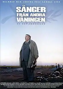 Songs from the Second Floor (Swedish: Sånger från andra våningen) is a Swedish black comedy-drama film which was released to cinemas in Sweden on 6 October 2000,[2] written and directed by Roy Andersson. It presents a series of disconnected vignettes that together interrogate aspects of modern life. It uses quotations from the work of Peruvian poet César Vallejo as a recurring motif.
