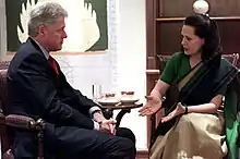 She contested Lok Sabha elections from Bellary, Karnataka and Amethi, Uttar Pradesh in 1999. She won both seats but chose to represent Amethi.[44] In Bellary, she had defeated veteran BJP leader, Sushma Swaraj.[45][46]