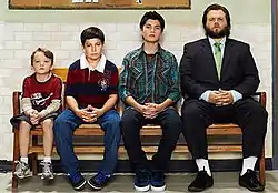 ![]() The cast of Sons of Tucson (from left to right), Benjamin Stockham as Robby, Frank Dolce as Gary, Matthew Levy as Brandon and Tyler Labine as Ron.[1] | |