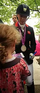 At the 2009 European Championships in Kristiansand, Norway, she won three gold medals; with her horse Pinocchio she won the individual and team grade IV events and was also part of the British squad that won the team championship. At the 2010 World Equestrian Games held in Lexington, Kentucky, United States, she won gold medals in both the individual and freestyle grade IV events.[3]