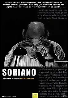 Soriano is a biographical documentary by Eduardo Montes-Bradley exploring the life and works of Osvaldo Soriano, author of Funny Dirty Little War through testimonies of friends and family in Argentina, France, Belgium, Germany, and Italy.[1] The documentary includes rare 16mm footage filmed by Soriano and friends in his hometown of Tandil in the early 1960s. Part of this original footage was used by the director to reconstruct a short film as it was scripted by a young Osvaldo Soriano. The show film is now on the permanent collection of several university libraries.[2]