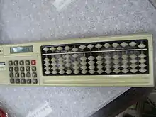 The soroban (算盤, そろばん, counting tray) is an abacus developed in Japan. It is derived from the ancient Chinese suanpan, imported to Japan in the 14th century.[1][nb 1] Like the suanpan, the soroban is still used today, despite the proliferation of practical and affordable pocket electronic calculators.