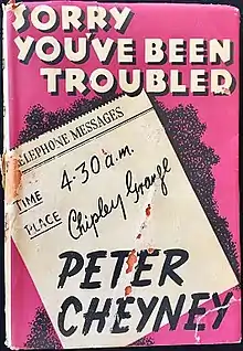 Sorry You've Been Troubled is a 1942 thriller novel by the British writer Peter Cheyney.[1] It was the fifth book in his series featuring the hardboiled London-based private detective Slim Callaghan. It was published in the United States under the alternative title of Farewell to the Admiral.