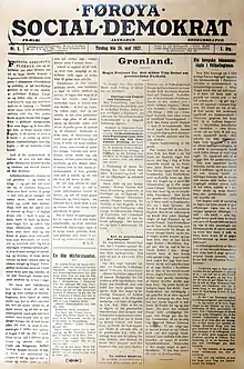 The newspaper published its first copy on 27 May 1927, as the Føroya Social Demokrat, and originally it was associated with the Social Democratic Party.[1][2] From 1945 to 1955 the newspaper circulated under the name Føroya Sosial-Demokratur.[2] In 2006 the Social Democratic Party sold their part of the shares to a new company, Miðlahúsið, that was owned by the newspaper's management, employees and Føroya Tele.[2]
