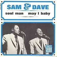 "Soul Man" is a 1967 song written and composed by Isaac Hayes and David Porter, first successful as a number 2 hit single by Atlantic Records soul duo Sam & Dave,[1] which consisted of Samuel "Sam" Moore and David "Dave" Prater. In 2019, "Soul Man" was selected for preservation in the National Recording Registry as "culturally, historically, and aesthetically significant" by the Library of Congress. It was No. 463 in "Top 500 Greatest Songs of All Time" by Rolling Stone Magazine in 2010 and No. 458 in 2004.[2][3]