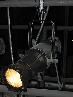 The Electronic Theatre Controls (ETC) Source Four (also known unofficially as Source 4 or S4) is an ellipsoidal reflector spotlight (ERS) used in stage lighting. First released in 1992, the Source Four was invented by David Cunningham and features an improved lamp and reflector compared to previous ERS designs, tool-free lamp adjustment, and a rotating, interchangeable shutter barrel.[1][2][3][4][5][6] The Source Four is widely used by professional theaters across the globe.[7][8]