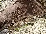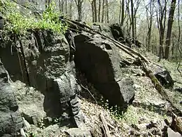 ![]() A ledge containing argillite hornfels visible on the east flank of Sourland Mountain in Hillsborough Twp. | |