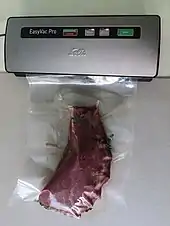 From a culinary viewpoint, the exclusion of air is secondary, but this has practical importance. It allows cooked food to be stored, still sealed and refrigerated, for considerable times, which is especially useful for the catering industry, and it excludes oxygen from food that requires long cooking and is susceptible to oxidation, e.g., fat on meat, which may become rancid with prolonged exposure to air.[8] It also improves the transfer of heat between the water bath and food, without the thermal insulating properties of any trapped air in the bag.