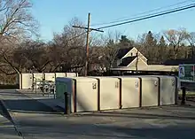 On June 11, 2012, the MBTA opened bids for the $9.622 million construction project.[13] Construction preparation began in September 2012. During the periods where the 1980s-built station platform was closed, temporary platforms east of the station (at the former station site) and west of the station were used to board passengers.[3] These platforms were installed in October and November 2012; ceremonial groundbreaking was held in December.[14][15]