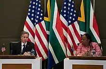 The United States and South Africa currently maintain bilateral relations with one another. The United States and South Africa have been economically linked to one another since the late 18th century which has continued into the 21st century. U.S. and South Africa relations faced periods of strain throughout the 20th century due to the segregationist, white minority rule in South Africa, from 1948 to 1994.[1] Following the end of apartheid in South Africa, the U.S. and South Africa have developed a strategically, politically, and economically beneficial relationship with one another and currently enjoy "cordial relations"[2] despite "occasional strains".[2] South Africa remains the United States' largest trading partner in Africa as of 2019.[2]