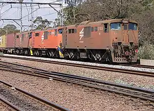 Apart from the "17E" markings, they were visually indistinguishable from unmodified Class 6E1s. Those in SAR Gulf Red and yellow whiskers livery that still carried number plates even still showed "6E1" on the plates. Altogether 139 Class 6E1 locomotives were modified to Class 17E, of which 14 were Series 7, 55 Series 8 and 70 Series 9.[1]
