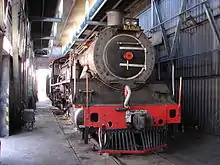 Six were built for the Caminho de Ferro de Benguela (CFB or Benguela Railway) in Angola by NBL in 1951, as their 11th Class and numbered in the range from 401 to 406.[9] These locomotives were wood- or coal-fired, depending on where they were operating, and had tenders with slatted frames installed on top of the bunker to increase their fuel capacity when wood was used. In August 1972, for example, numbers 401, 402 and 406 were based at Lobito and were observed to be coal-fired. At the same time, numbers 403 and 405 were observed at Luso and no. 404 at Nova Lisboa, all wood-fired.