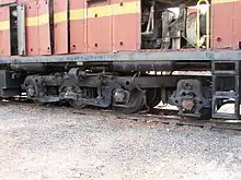 Both versions ran on the same 1Co' bogies, three-axle Co' bogies with additional integral single axle pony trucks which was designed and produced by General Steel Castings. The fourth axle reduced the maximum axle loading sufficiently to enable these relatively heavy locomotives to operate on the very light rail which was used throughout South West Africa at the time.[2]
