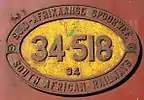 While it is believed that they were for the most part renumbered from Iscor numbers to SAR numbers in sequence with their Iscor numbers, at least one locomotive has been observed as being out of sequence. No. 34-523 bore works plate no. 35265, identifying it as ex Iscor no. 5D. It can be presumed that no. 34-505 carried works plate GE 40402, which would make it ex Iscor no. 23D, but since the works plates have over time disappeared from most of these locomotives, this cannot be confirmed.[1]