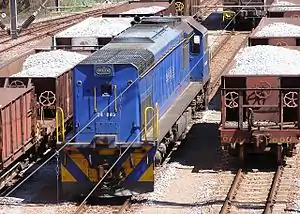 The Class 34-800 type GT26MC diesel-electric locomotive was designed by General Motors Electro-Motive Division and built for the South African Railways (SAR) and Iscor by General Motors South Africa (GMSA) in Port Elizabeth. The first fifty were delivered between August 1978 and December 1979, numbered in the range from 34-801 to 34-850. In 1979, one more of the same type was placed in service by Iscor. Between April and July 1980, a further eight of these locomotives were delivered to the South African Railways, numbered in the range from 34-851 to 34-858.[1][2][3]