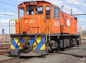 The Class 36-200 type SW1002 diesel-electric locomotive was designed for the South African Railways (SAR) by General Motors Electro-Motive Division (GM-EMD) and all but one were built by General Motors South Africa (GMSA) in Port Elizabeth. The exception was the third type SW1002 locomotive to be built for Iscor in Pretoria which was delivered from GM-Astarsa in Argentina.[1][2][3]