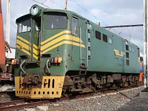 In 1955 and 1956, the South African Railways placed sixty Class 5E, Series 1 electric locomotives with a Bo-Bo wheel arrangement in mainline service. The Class 5E introduced what eventually became the most prolific locomotive body shape to ever run on South African rails.[1][2]