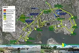 The project was first envisioned by Majora Carter of The Point Community Development Corporation in the late 1990s as part of a $1.25 million federal transportation grant application.[2] It was formally proposed in the Hunts Point Vision Plan of 2004 and announced by Michael Bloomberg in 2006.[3][4] In 2014, it was estimated that the total project cost would be $48 million.[5] By 2012, enough of the greenway had been built that New York magazine described it as "transformative".[6]