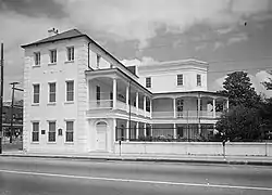 William Aiken House and Associated Railroad Structures is a historic district in Charleston, South Carolina, that contains structures of the South Carolina Canal and Rail Road Company and the home of the company's founder, William Aiken. These structures are considered "nationally significant" in relation to the history of the development of the railroad industry in the United States.[8] The South Carolina Department of Archives and History states that the structures in this district "represent the best extant collection of antebellum railroad structures illustrating the development of an early railroad terminal facility." [8] The railroad company with which they are associated was the first to use steam from the beginning of its operations, use an American-made locomotive, and carry U.S. mail.[8][9] When it began operation in 1833 it had the greatest length of track in the world under single management.[9]