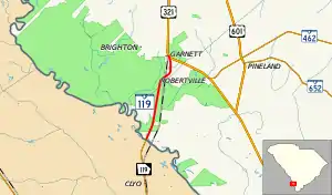 South Carolina Highway 119 (SC 119) is a 5.990-mile (9.640 km) state highway in the U.S. state of South Carolina. The highway connects the Georgia state line and Garnett.