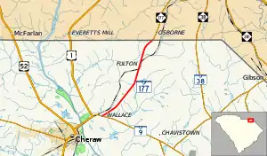 South Carolina Highway 177 (SC 177) is a 7.820-mile (12.585 km) primary state highway in the U.S. state of South Carolina. It connects the community of Wallace with Hamlet, North Carolina.