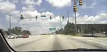 The road begins at US 25 at Augusta Road, heading north as South Pleasantburg Drive, a six lane road, passing by businesses before an intersection over Interstate 85 (I-85). The road continues east as a commercial road, through many business in Greenville, passing by Greenville Technical College's (Greenville Tech) Barton (or Main) Campus[3] and the former McAlister Square Shopping Center to the east of the road. At an interchange with US 276 (Laurens Road), the road becomes North Pleasantburg Drive, continuing north, passing the Greenville Downtown Airport and the Carolina First Center to the east via Tower Drive.[4][5] The road then passes over Interstate 385, continuing north through the North Hills Shopping Center, quickly followed by Bob Jones University to the west.[6] At the intersection with County Road 304, SC 291 turns west for one block before meeting with US 29 at Wade Hampton Boulevard, before turning northwest. It continues through more commercial development before making a turn west to South Carolina Highway 253 at Paris Mountain Road. According to the SCDOT, this is the official northern terminus. However, signage shows that it continues to an intersection with US 276 at Poinsett Highway.[2][7]