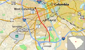 South Carolina Highway 35 (SC 35) is a 5.630-mile-long (9.061 km) state highway in the U.S. state of South Carolina. The highway connects the southern part of Cayce and West Columbia.