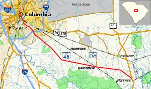 | 1.481 | 2.383 | Eastern terminus of SC 48 Truck; provides access to Columbia Metropolitan Airport | |||