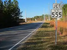 South Carolina Highway 555 (SC 555) is a 14.900-mile (23.979 km) primary state highway in the U.S. state of South Carolina. It serves as an alternate route from downtown Columbia to Blythewood.