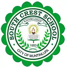 South Crest School[1] is a private primary and secondary educational institution in Muntinlupa in the Philippines. It is situated between two subdivisions, Agro Homes and Soldiers' Hills, thus giving it two addresses: 101 Canary St, Agro Homes Subdivision, Putatan, Muntinlupa and MBAI Commercial Complex, Soldiers Hills, Muntinlupa.