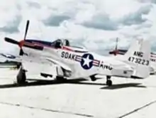 The War Department authorized the establishment of Air National Guard Squadrons, Groups and Wings in 48 States. The formation of a South Dakota - Iowa Air National Guard and assignment of Col. Frederick Gray, Jr.,[3][4][5][6][7] who was a veteran fighter pilot having served with the 8th Air Force and The RAF, as group instructor for both units, was announced by Brigadier General Charles H. Grahl, Iowa Adjutant General, at Des Moines, Iowa on 26 June 1946.[8] Squadrons of the Air Force, each with 34 planes of various types, were located in Sioux Falls, at Sioux City and Des Moines, Iowa. Air Guardsmen under Col. Gray were trained to throw 102 planes into battle within 12 days. Lt. Col. Ted Arndt assistant to the Adjutant General surveyed local air field facilities, making note of buildings and installations to be needed by the new Air Force. The South Dakota Air National Guard 175th Fighter Squadron, with Thirteen officers, was approved by Col. E.A. Beckwith, Adjutant General, Rapid City, South Dakota on 20 September 1946.[9] The 175th Fighter Squadron was assigned to the 132d Fighter Wing,[10] Des Moines, Iowa. The unit was equipped with the F-51D Mustang, and several types of support aircraft.[11] 18 September 1947, however, is considered the South Dakota Air National Guard's official birth concurrent with the establishment of the United States Air Force as a separate branch of the United States military under the National Security Act.[2]
