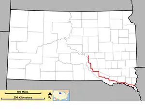 | Vermillion | 196.882 | 316.851 | Vermillion only signed eastbound; Newcastle, NE only signed westbound | ||