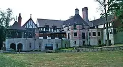 The historic William E. Telling mansion, which is on the National Register of Historic Places.[40] served as home to the South Euclid-Lyndhurst branch of the nationally renowned Cuyahoga County Public Library system.[41] A wing of this same building, which once served as the gardener's quarters, houses the South Euclid - Lyndhurst Historical Society.[42] In 2012, the CCPL announced plans to sell the Telling mansion and move the Library to a new facility[43] at 1876 South Green Road.[44] In September, 2013, the Library board voted to sell the Mansion to Cleveland investor Richard A. Barone. The mansion now houses the Museum of American Porcelain Art.[45]