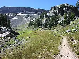 The South Fork Cascade Canyon Trail is a 5.6-mile (9.0 km) long hiking trail in Grand Teton National Park in the U.S. state of Wyoming.[1] The trail begins at the Forks of Cascade Canyon and extends to Hurricane Pass. A short connector trail just before Hurricane Pass leads to Schoolroom Glacier.[2] From the Forks of Cascade Canyon and most of the way through South Cascade Canyon, backcountry camping is allowed with a permit.[3] The South Fork Cascade Canyon Trail is also part of the Teton Crest Trail its entire length and to the south beyond Hurricane Pass lies Alaska Basin.